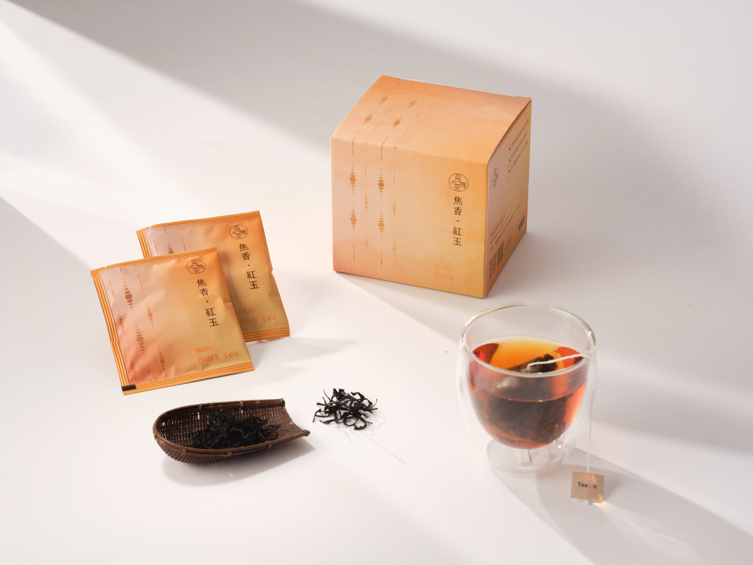 為了保留紅玉紅茶 (Ruby Black Tea) 那股霸氣的香氣,我們堅持使用完整原葉製作茶包。透過三角立體空間的舒展,每一滴茶湯都完美還原了日月潭的風土。